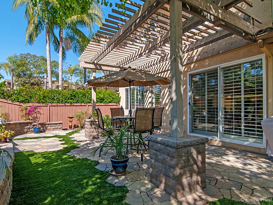 UPGRADED TO THE MAX! This uniquely updated townhome, in the gated community of Brindisi in Aviara, is the former Plan 3 model (largest). Character-rich wood floors welcome you at the entry then lead you into the roomy living area w/adjacent office lined w/full wall built-in. Marble counters, crown molding, plantation shutters, 2 fireplaces & wainscoting add quality everywhere you look! Huge master has remodeled bath w/his and her sinks, vanities and closets. Landscaped yard has rare gate to common area!