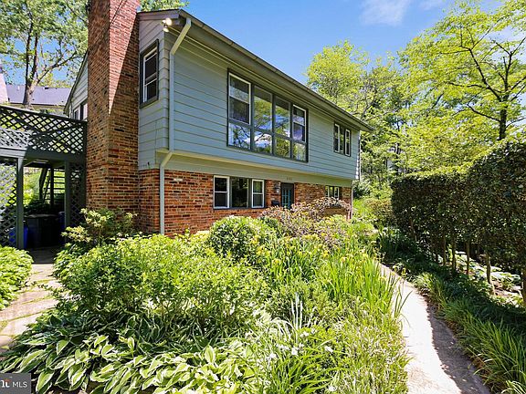 Charming, updated, two-level English Cottage with incredible garden vistas from every view. Main level has open granite/maple kitchen with a wall of built-in storage, opening to a family room/dining area with fireplace, bamboo flooring, den/4th bedroom, full bath and laundry with back exit to patio. Light + airy upper level has living room w/fireplace, exit to deck, 3 bedrooms and full bath. New HVAC and newer windows. Walk to C & O Canal, Glen Echo Park and community pool with easy access to 495, VA and DC. As-is condition but well-maintained.