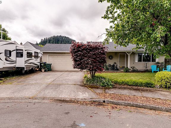 Nice end of road location for this single level home! Extra large family room & dining room. Separate living room with fireplace. Updated laminate in living areas. Main bath has tile floor, new vanity & large soaker tub. New roof & water heater. Heat pump with A/C. Many updated windows. Covered deck area with hot tub and yard that backs to Thurston High ball fields. RV parking!