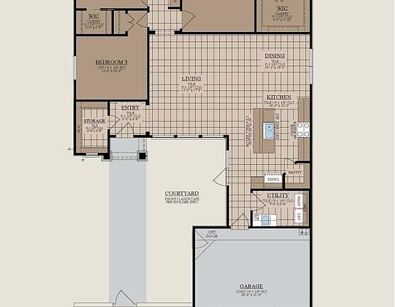 This home offers outdoor living within your private courtyard. This plan also features a huge island kitchen, informal dining and open concept living room with a feeling of grandeur. Total living 1619 sq. ft p>