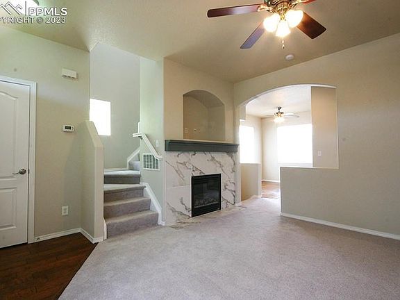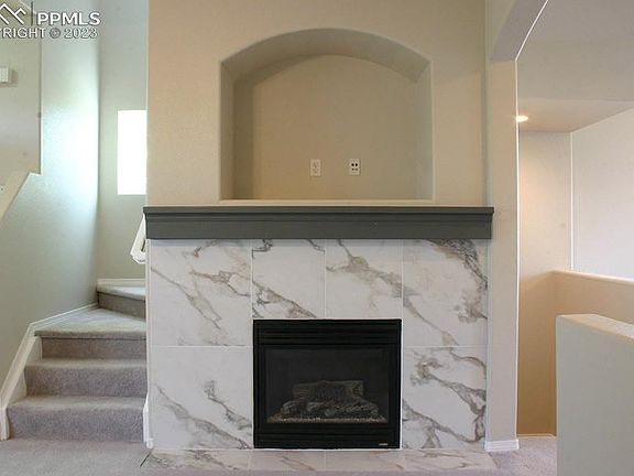Step up to The Vistas at Nor’wood Townhomes to have it all! A superb North Colorado Springs location offers a professionally maintained community with beautiful mature trees and mountain resort-style landscaping. This quiet end-unit home is light and bright with large windows, and extra south-facing windows. Many designer upgrades, including all new carpeting and tile flooring, dramatic carrera tile-faced gas fireplace, mahogany kitchen cabinets, matching Whirlpool stainless appliances, gourmet stainless sink & faucet, stacked stone backsplash, and recessed lighting. Two spacious bedrooms are on the upper level, each with its own private bathroom and walk-in closet. The full-size washer & dryer are conveniently located between the bedrooms. Efficient central heat and air conditioning with two ceiling fans on each floor keep you comfortable all year-round. The attached two-car garage includes additional workshop and/or storage space. HOA covers insurance, exterior maintenance, trash service, landscaping, and access to the sparkling swimming pool, spa, and large cabana to relax and entertain. All this and a fantastic Pikes Peak & front range view!