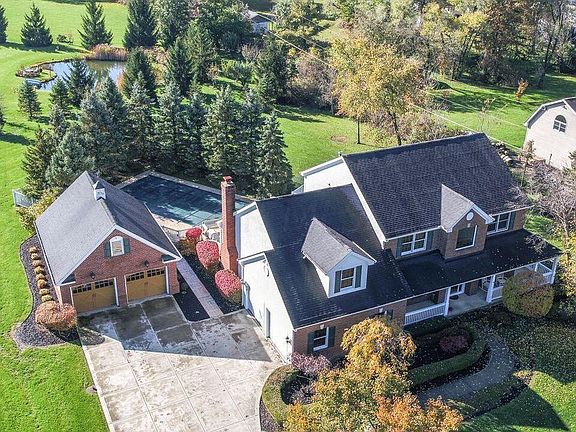 Stunning Kitsmillers Crossing 4-5BR/3.1BA home! Many updates including fully equipped kitchen w/ granite counters, tile backsplash, SS appliances & eat in space. Great room features vaulted ceilings w/ skylights, fireplace & staircase to second floor that is home to 4 bedrooms, loft area w/ closet that could easily be made into a 5th bedroom, main bath and master suite featuring cathedral ceilings, WIC,newly updated bath w/ granite, cabinets & tiled shower w/ niche. Finished LL has separate workout room, full BA & rec area w/ modern kitchenette. 2 car heated attached garage w/ finished floor! 2 car detached garage w/ add'l finished storage space! Huge wrap around porch, in ground pool w/ heater & newer liner, deck w/ natural gas grill. All of this and more on ~1 acre lot in Gahanna Schools