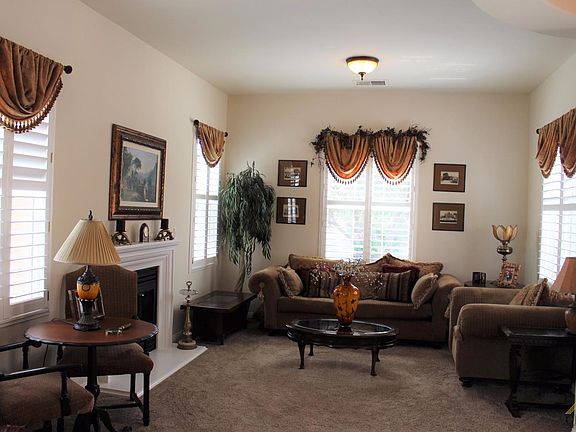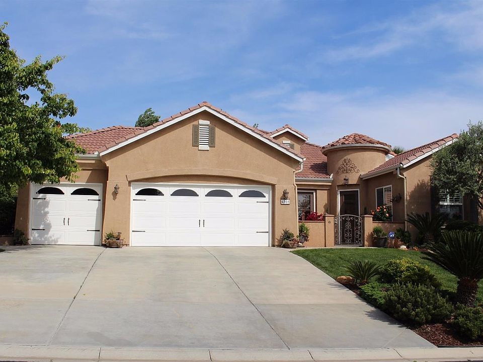 Tuscany Gated Community! This gorgeous home features 3 bedrooms, 2.5 baths plus an office and a 3-car drive thru garage. This home includes an office with built in bookshelf, formal living room with fireplace, a great room with an additional fireplace, dining area, a lovely spacious kitchen with a granite island, tons of cabinet space, a gas stove top and separate oven. The master bedroom offers a master bath with walk in closet, double sinks and separate tub/shower with access to the beautiful backyard. The backyard includes a covered patio along with two separate pergolas, an outdoor BBQ, fruit trees, a lovely spa, access to the drive thru garage and two relaxing rock water fountains. A must see to appreciate.