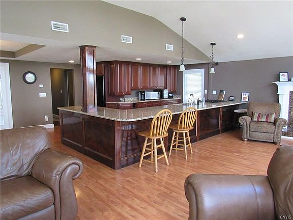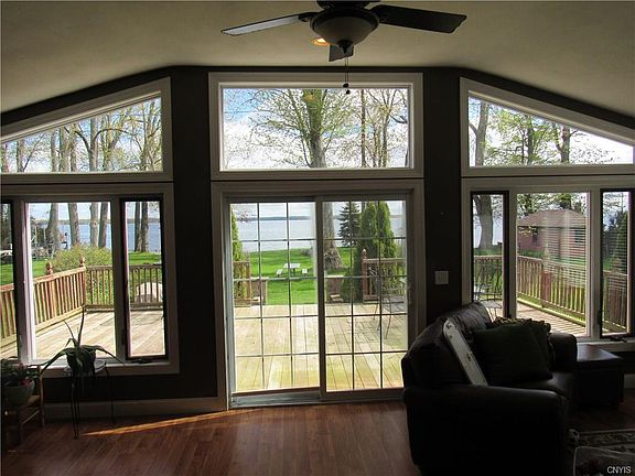Just in time for Summer, this wonderful lakefront property, located on the beautiful South Shore of Oneida Lake, features 4 bedrooms, 2-1/2 baths. with oversized 2 car garage, Master bed room suite has beautiful views of the lake and has a huge walk-in closet. Formal dining room/ office. The large open kitchen has granite countertops, cherry cabinets and all appliances are included. The family room has a gas fireplace, floor to ceiling windows overlooking the lake that leads out to a large deck and stone patio. Perfect for those long summer days. Don't miss this one!