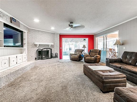 Welcome to this 4 bedroom, 3 baths, 2 living, den with wood burning fireplace, kitchen, breakfast room, & sunroom (built in 2007) and open patio. A true mother in law suite offers a wonderful place for a teenager or mother in law to occupy & have some separation from the other bedrooms. Highlights include: security system, sprinkler system, granite countertops in bathrooms, storm shelter and much more. This home is within minutes of shopping, restaurants and highway access. Welcome home!!