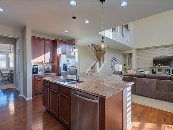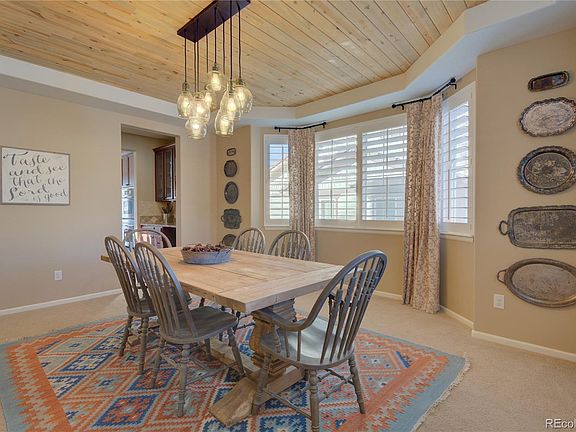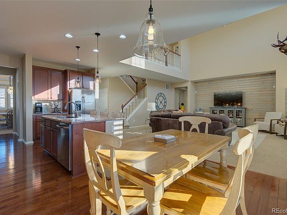 This fabulous 2-story home backs to open space with breath taking mountain views. Gourmet kitchen with walk-in pantry, large island & eating area. Great room with vaulted ceilings & floor to ceiling windows that showcase the beautiful Rocky Mountains. Entertain in your large dining room with butler's pantry. Five-piece master bath with spacious, custom walk-in closet. Beautiful upgrades throughout home including plantation shutters, crown molding & chair railings. Wired for built-in speakers. Finished walkout basement with bedroom, bathroom, storage & flex room that could be used for a media room, exercise room or game room. Backyard is professionally landscaped with stamped concrete patio & garden beds. Prestigious Cherry Creek School District. Walking distance to Pine Ridge Elementary School, Wheatland's clubhouse & pool, multiple parks and walking trails. Future YMCA located just a couple blocks away will be included in HOA. Close to e470, Southlands mall & Aurora Reservoir.