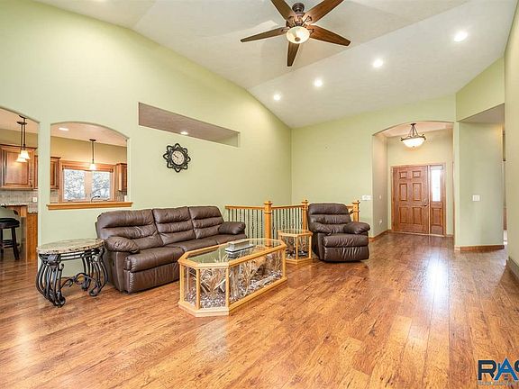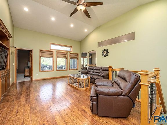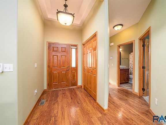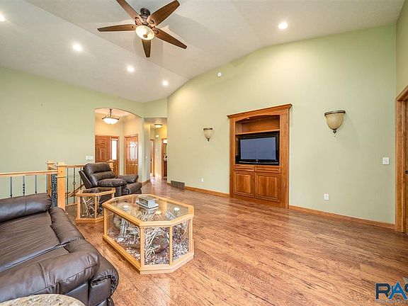 Don't miss out on this beautiful ranch walkout, 5 bedroom 3 bath home! The Main level features vaulted ceilings and wood laminate floors. A spacious kitchen with granite counter tops, maple cabinets with crown molding, and a convenient mudroom with built-in lockers and plumbed for laundry. There are three bedrooms, including the master bedroom with en suite bath, double vanity, large shower & a walk-in closet. The lower level has even more room to enjoy. A large family room with gas fireplace, built ins, 2 bedrooms both with walk in closets, a full bath with whirlpool tub, a bonus room, and a wet bar. The lower level walk out leads you to the cozy patio overlooking the nicely landscaped backyard. A 3 stall garage, main level deck, plus an underground sprinkler system complete this must see home!