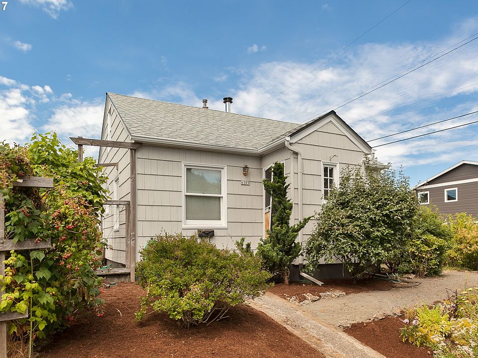 Adorable Mt Scott cottage has new roof/exterior paint, wood floors, cute vintage kitchen and feels open and light! Situated on a corner lot with edible and perennial plantings and great southern exposure for gardening. Second floor square footage is an attic with pull down stairs for access. Short ceiling height, but good space for desk or sleeping loft! Minutes to Mt Scott Park, pool and community center, and the action on Woodstock!
