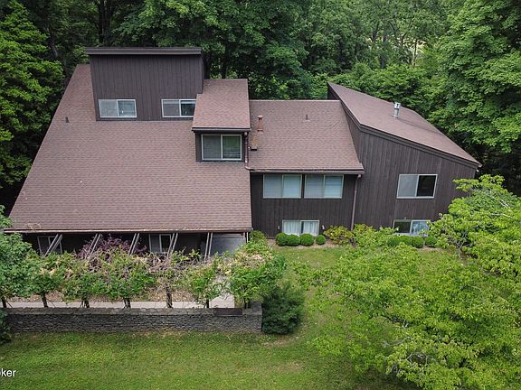 Nestled amidst a lush, wooded setting, this architectural gem, designed by G. Raymond Berry in 1971, offers a unique blend of tranquility, style and natural beauty. As you approach the wisteria-lined sidewalk, you'll be awed by the expansive, rolling front lawn. Upon entering the front door, you'll sense a mid-century modern aesthetic. The living area features an open concept, whose focal point is a striking creek-stone fireplace in the center of the room, which flows into the dining space. The expansive windows throughout allow an abundance of natural light to illuminate the interior, seamlessly merging the indoors with the outdoors. The adjacent kitchen features a large range with two ovens. Enjoy preparing your meals with picturesque views of the surrounding woodland. Rounding out the first floor is a large primary suite, a tranquil haven with large windows that frame nature's beauty. The ensuite bathroom offers a sunken tub and shower with a walk-in closet. The ground floor level offers two large, bright bedrooms, a full bathroom, and a substantial family room with access to the side patio. A fourth bedroom and third full bathroom on the second floor provide comfort and versatility for family, guests or home office space. The two-car garage also offers ample storage space. This home offers the perfect balance between seclusion and convenience. Located in a desirable east end neighborhood off River Rd and Wolf Pen Branch, you'll have easy access to local amenities and shopping as well as interstates in a serene, wooded neighborhood. This home is an idyllic setting waiting for your personal touches. Don't miss the opportunity to make this exceptional residence your own. Schedule your showing today.