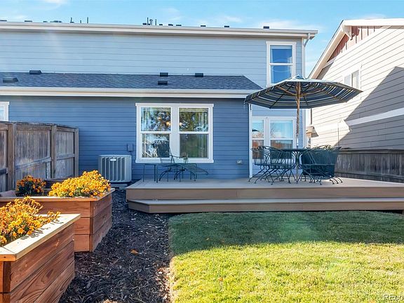 This light and bright 3 Bed and 3 Bath paired home in Castlewood Ranch is sure not to disappoint! No neighbors directly across the street nor behind you, which allows for added privacy! This home is upgraded throughout with newer kitchen cabinets, gorgeous backsplash, beautiful granite counters, tile flooring and crown moulding throughout the main level! The primary bedroom has a private bath, a large walkin closet and features hardwood floors, crown moulding and beautiful mountain views! Spacious secondary bedrooms with newer carpet compliment the second story. This property has a very usable floorplan with no wasted square feet and is perfect for your loved ones! Great backyard with large, brand new Trex deck patio. Sunny southern exposure eliminates many hours of snow shoveling in winter! Hurry, this one won't last long - schedule your showing today!