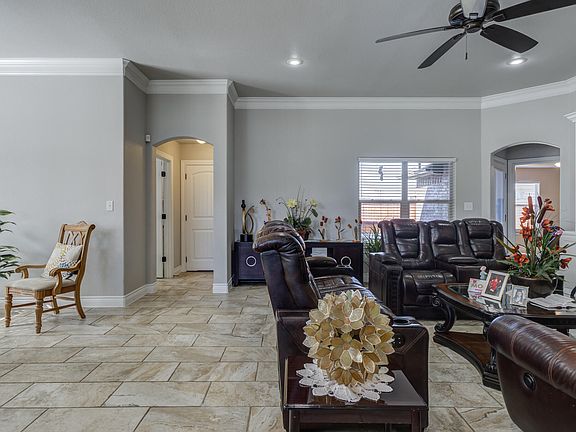 Nestled on a quiet cul-de-sac in one of West Texas' most desirable neighborhoods, this stylish home combines open-concept living with timeless details. The spacious floor plan flows effortlessly from the bright living area to a chef-friendly kitchen featuring granite countertops, a large island with bar seating, and ample cabinetry. Tall ceilings with elegant crown molding add a touch of sophistication throughout, while the expansive primary suite offers a true retreat with a generously sized closet and spa-like bath. Step outside to a beautifully landscaped backyard, complete with a covered patio and full privacy fence—perfect for entertaining or relaxing evenings under the West Texas sky.