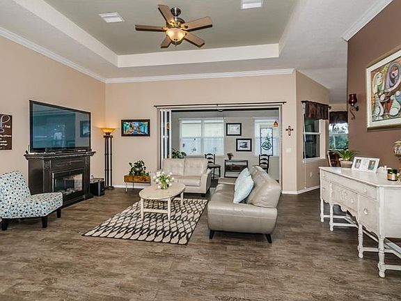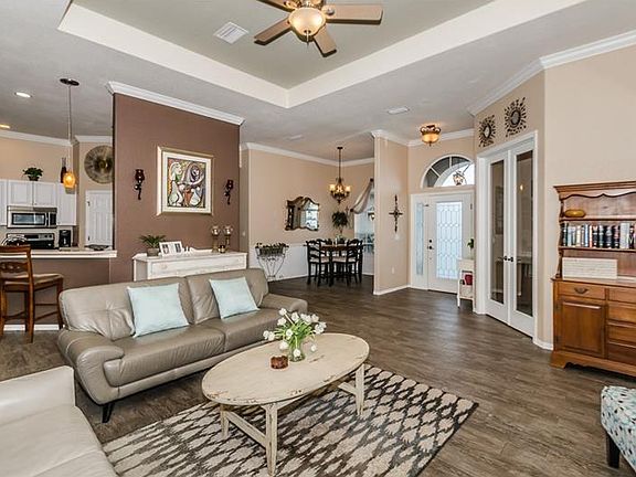 Nestled in desirable Ancient Oaks, this meticulously maintained home sits on a .25-acre corner lot. The abundant, well-cared-for landscaping and 2.5-car side entry garage enhances this home's exceptional curb appeal. Professionally-painted exterior with new light/door fixtures Nov 2016. Over $45,000 in upgrades awaits as you walk through the front door; and the pride of ownership does not go unnoticed. Crown molding surrounds the 10'9" ceilings while the entire home boasts custom-painted walls (2015/16). Stunning wood-plank tiled floors (professionally installed Nov 2016) spans the home, creating a natural flow throughout the living space. The spacious kitchen is equipped with Corian countertops and new stainless steel appliances (2016). Separate formal dining room uniquely characterized with Wainscoting. Split floor plan with separate den allows for privacy. Numerous windows bring in natural light while further enhancing the home's curb appeal. Large master bedroom with private entrance and two walk-in closets. Master bathroom is spacious with double vanities, jetted tub, tiled shower, and separate water closet. Back of home has been professionally enclosed to expand indoor living with double-pane hurricane impact windows (2015). Out back you will find a private retreat...a pavered garden area with extra-large fenced-in side yard. Perfectly located in the heart of the ever-expanding city of Parrish in excellent school zones.