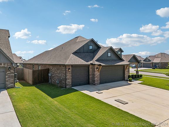 Large open plan with wide open living/kitchen/dining with natural light pouring in. 3 car garage and huge corner lot. Master planned community with easy walk to the Addison Creek Clubhouse, Workout Facility, Pool and Park. Walking Trails in community that also connects to the parks and citywide walking trails. Five minute drive to newly renovated Washington Park. Home sits on one of the largest corner lots, and is "Better than New Construction" With a Full Privacy Fence installed as well as Full Gutter Installation completed, app controlled sprinkler system. Home is in desirable Bixby North School District and provides easy access to Memorial Drive with restaurants and shopping. Close to Joe's Farm yet 15 minutes from downtown Tulsa and Gathering Place.