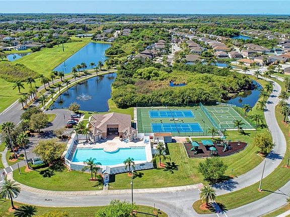 Welcome to a carefree Florida Lifestyle at a great price and a great location close to Tampa and Bradenton, yet away from it all. RESORT STYLE AMENITIES w/LOW HOA'S and NO CDD! Enter this gorgeous community with lush landscape throughout, manicured sidewalks, Resort Style amenities that include a pool, basketball, Tennis, and playground. As you pull up to the house there is attractive Flordia Style Tropical Landscaping, an extra long driveway with plenty of parking for friends and family to visit. Enter the home and you are welcomed by a bright and airy space with warm tone floors and an open concept living, dining, kitchen and breakfast area that is perfect for gatherings and very comfortable for daily life - very spacious yet simple and easy to care for. The Kitchen features wood cabinets, stainless steel appliances, pantry, and breakfast counter. The living room is spacious for a nice sectional and large screen TV and overlooks the patio. Walk to the master bedroom and you will find ample space and a large en-suite bathroom with separate vanities, soaking tub and separate shower area. The other 2 bedrooms are ample in space and have access to a bathroom. Unique to this property is a fully enclosed backyard that is very spacious and offers privacy. At this price and yes! with LOW HOA's and NO CDD, this property will not last long, call for a private showing today!