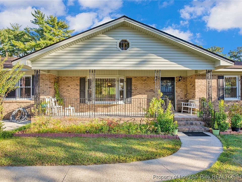 Come check out this well-maintained 3 beds/ 2 bath home in Cottonade: This home has been freshly painted, features a big front porch, hardwood floors in all the bedrooms, pristine carpet with hardwood floors underneath, master with walk-in closet and tiled standing shower, a spacious living room awaits, and a great room displaying wall bookcases. The eat-in kitchen has been renovated with beautiful counters, subway tile backsplash, and new tiled floors, it connects to a formal dining room displaying a gorgeous crystal chandelier. In the garage, you find a storage room and a laundry room. Outside, a big backyard with an established lawn front and back, mature trees, and a sprinkler system. Also as a plus, a new and extended driveway. Don't miss this beauty! this home is located 5 minutes from the mall area where you find all the shopping, dining, and movie theaters in Fayetteville, about 10 minutes to 295 highway, and 2 minutes from Ft Liberty Gates, however, it is also meticulously secluded in a serene neighborhood.