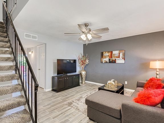 ***Gorgeous Remodel*** Beautiful new white kitchen cabinets, quartz countertops, new SS appliances. 6x24 new tile throughout lower level. New carpet, doors, trim, lighting, hardware. Adorable private back patio with shade tree, covered parking, community pool. MOVE-IN-READY!