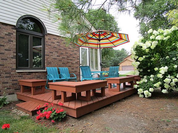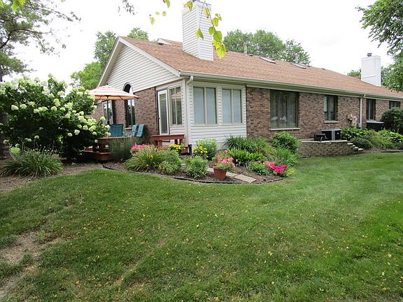Lovely and spacious unit with partial exposure on one side of basement. Large foyer at front door has ceramic flooring. Sun room with door to outside deck & 2 sets of sliding glass doors to enter the kitchen or living room. Vaulted ceilings first floor. Oak wood work, & hardwood flooring in one bedroom which is currently used as an office/den. Large master bedroom with 3 closets and a double sink vanity and step in shower. Eat-in kitchen area has a large eye brow window and see-through fireplace between kitchen and living room. Dining room open to living room.Full basement with 2 extra large finished rooms, with one currently set up with beds & a full bath. Basement has the perfect set up for guests or related living situations. Several large storage areas also in basement. 2 full baths on main floor. Over sized 2 car finished garage. Many updates in the past 2-3 years include: blacktop driveway, roof, central air conditioner, water softener & kitchen window. Extra parking pad.