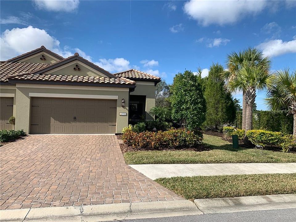 Great location and shows like a model home. This stunning 2/2 plus den has builder and owner upgrades galore! Located on the end which has landscaped private lot, the most private lot in the community. Den/office features a custom built in that can be used as a closet for 3rd bedroom or craft/storage with custom fold out desk and warm rich wood floors. Upgraded kitchen cabinets, counter tops and lighting throughout. Indoor laundry room, open concept living and kitchen make the home feel bright and airy! Custom shutters on all the windows. Stackable sliders open to the covered oversized lanai for outdoor living with a very private setting and even has a natural gas line. Master bedroom suite has plenty of room and features his and her closets. Meticulously kept garage with custom built ins. Large community pool with outdoor kitchen, bathrooms, large covered seating area, and lounging. A great pet friendly, Neil Home Mediterranean style community consisting of 92 villas with private gates and 24 hour security. All of this close to UTC, dining, airport, and beaches this unit wont last long!
