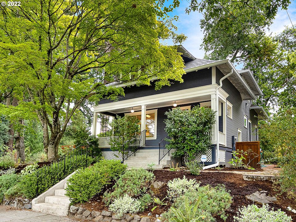 Perched above the street in an absolute prime Woodstock location, this rare-find, modern Craftsman welcomes you in with perfect front porch hospitality. The open main creates warm, hearty gathering spaces, w/exquisitely remodeled chef's kitchen and great indoor-outdoor flow for entertaining. Smart layout offers ample room for home offices, bedrooms, or whatever flex-space you need. Enjoy the Woodstock lifestyle near shopping, groceries, dining, library, dog park, and Eastmoreland golf course. [Home Energy Score = 4. HES Report at https://rpt.greenbuildingregistry.com/hes/OR10205378]