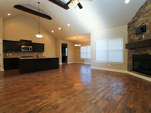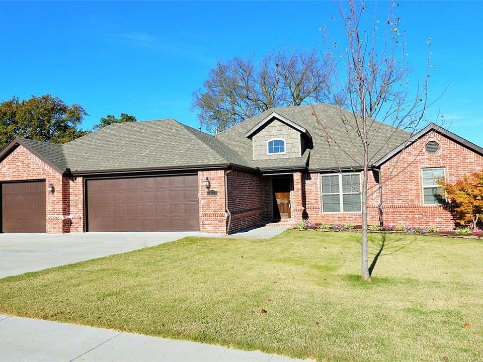 Affordable privacy in this all brick one level home on a double lot! LED lighting in garage with custom cabinetry. Custom rock landscape beds w/ lighting all around. Large covered deck. Beautiful interior finishes including beams on ceiling, lovely wood floors, granite, fully tiled showers, and stainless appliances! Like New!