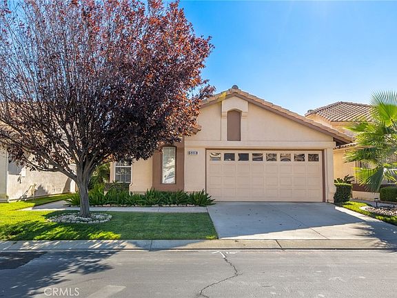 Sun Lakes Country Club, Resort Living in a Beautiful Golfing Community for 55 years of age and over. Age restrictions per HOA & CC & R's. 2 Golf Courses to pick from: 18-hole or the 18-hole executive courses. Nothing like these courses anywhere around. Of course, you must be a resident or a guest to play. This home is known as the "Turnberry" Floor plan at 1,195 sf with 3 bedrooms and 2 bathrooms. Home IS move in ready! Both bathrooms have newer faucets, lights and mirrors. Flooring in kitchen, bathrooms, and master bedroom are tile while both guest bedrooms are a lovely wood laminate. Master bedroom is equipped with a ceiling fan and light. Extra counter space and cabinets have been added to the kitchen. Some of the cabinets have pull outs for easy access. There are 3 sliding doors to the outside patio area. Master bedroom, kitchen and living room. You will love the brick fireplace centrally located for optional heating of the family room. It's been used for wood but does have a gas line. The garage has plenty of cabinets for storage as well as a pull-down stair to the attic storage space. There's even a golf cart niche. The backyard has been landscaped for low maintenance. Sun Lakes is located near shopping, entertainment and restaurant with Morongo Casino and Desert Hills Premium Shopping Mall 15 minutes east on highway 10. Some of the amenities in Sin Lakes are: Championship Golf Course, 3 Club Houses, Restaurant & Lounge, Tennis, Swimming (inside & outside), Bocce Ball, Pickle Ball / Paddle Ball, and 3 Gyms. Many, Many social clubs to pick from or just sit in the library and read. You decide what to take advance of. Don't miss this great home.
