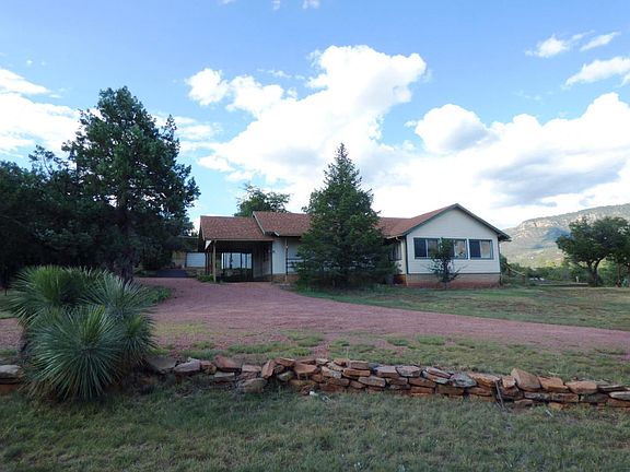 Rare find these days...beautiful 1 acre parcel with spectacular views of the majestic Mogollon Rim to the east. Older doublewide manufactured home with an added second master bedroom with charming wood-burning fireplace & half bath, a sunroom and storage pantry & snow roof over entire home. Large east side windows bring lots of natural light into the dining room & livingroom. Spacious covered rear patio & storage area. Workshop/garage, carport & metal storage shed. Horses welcome!