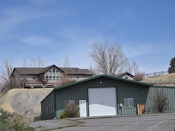 BEAUTIFUL HOME WITH FABULOUS PANORAMIC VIEWS. This spacious home is well-maintained and includes 4 bedrooms, 3 baths, office, bonus room/sunroom, game room, fitness room, 1 car and 3 car attached garages plus HUGE heated shop. Main level includes living room with 102" projection TV and lighted tray ceiling, professional office with built-ins, kitchen with stainless appliances, double wall ovens, gas range top, island with sink, pan rack, built-in desk, dining area with French Doors leading to a Sunroom/bonus room with Cathedral ceiling boasting ceiling to floor windows to take in the views and access to Trex deck/balcony with hot tub. The Master suite has a lighted tray ceiling, dual closets, access to balcony hot tub and gorgeous 5-piece bathroom that includes a fireplace, waterfall, jetted soaking tub, walk-in glass shower, double sink vanity and water closet; plus the utility/laundry room and a one car oversized finished, heated garage, floor drain and sloping floor. Throughout the home are Alder doors, Hickory cabinets, custom tile, plush wall to wall carpet, upgraded lighting and plumbing fixtures and many built-ins. Walk-out basement downstairs includes Game room complete with pool table, coffered wood ceiling above and stained glass light fixture, lighted tray ceiling, wet bar with barstools, full size refrigerator & microwave, fitness room with wall murals and mirrored wall, 3/4 bath and 3 car oversized garage. Covered patio off the walk-out basement is perfect for outdoor entertaining and BBQs with the included gas grill and two patio heaters. Other features include whole house audio, internet, central air, automatic sprinkler/irrigation system, landscaping, water softener, water filter, recirculating hot water, central vacuum system, Gardening/tool storage shed. No Covenants or HOA. Please note, the home is modular construction built to IRC code. The insulated Shop building is 88' X 40' and has two 12' X 12' exterior overhead doors. The shop is divided in half by a wall and one interior 12' X 12' rollup door. Both sections have FANG overhead heaters and the south half has in-floor heat, an evaporative cooler and half bath. Currently configured with a paint booth in the north half and office with mezzanine storage in the south portion. There is plenty of room here for your RV, vehicle collection, equipment and toys plus work space and storage space for your hobbies or home business. A carport on the east side is 88' X 14' for outdoor storage plus a large fenced area.