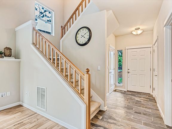 This lovingly cared for house is nestled into the peaceful, west side community of Riverstone, and is just waiting to welcome you home! The main living area is open and bright, fostering connection between kitchen, dining and living spaces. A gas fireplace, gleaming hardwood floors and ample windows make this a functional and attractive gathering place. Thoughtful design details in this 1,795 SF home include tile floor borders, sliding glass door from dining to backyard & kitchen island with built-in eating bar. Expansive master boasts vaulted ceilings, walk-in closet & master bath with large double vanity and sliding barn door separation. An additional 3 bedrooms, full bath & laundry room round out the upper level. Mature trees and landscaping create a relaxing retreat in the fully fenced backyard complete with large paver patio, raised garden bed & manicured lawn. Just blocks from the Deschutes River, you'll find easy access to countless miles of adventure along the river trail.