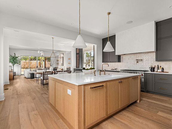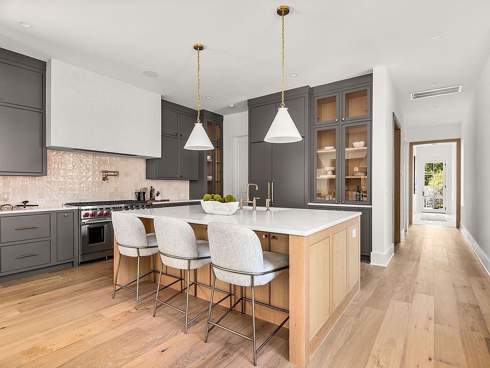 Inside, you'll find soaring 10' ceilings on both floors, custom cabinetry, designer tile, bespoke lighting, and endless thoughtful touches throughout. The heart of the home features a chef’s dream kitchen with paneled appliances, a walk-in pantry, and windows that flood the space with natural light. High ceilings and integrated speakers create an open, airy atmosphere with a sophisticated feel.