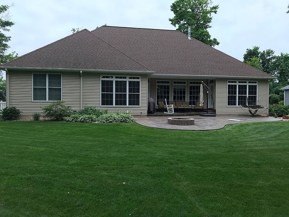 Beautiful custom built ranch in absolute move-in condition. Beautiful setting that includes 2 lots with a total of 1.21 acres. New 800 sq ft stamped concrete back patio with built in fire pit. Nice open floor plan and lots of living area with 3,386 finished square feet, 4 bedrooms and 3-1/2 baths. Living room with cathedral ceiling, gas fireplace, and wonderful wall of windows overlooking back yard. Great kitchen with ceramic tile floors, granite countertops/backsplash, complete stainless steel appliance package, and adjoining dining area. Master suite has nice sized master bedroom with trey ceiling and large master bath with heated ceramic tile floor, 2 sinks, whirlpool tub, separate shower, and walk-in closet. A Jack and Jill bath with 2 sinks splits the other 2 main floor bedrooms. Main