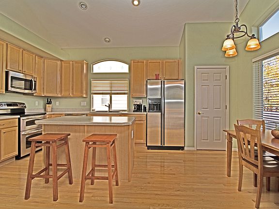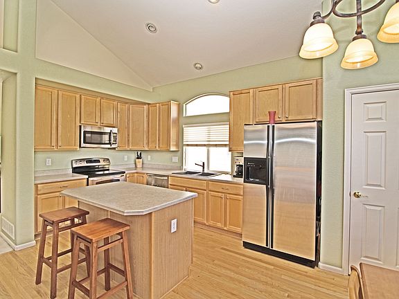 Welcome to the sunny side of Pinery West! Charming 2 story offers Harwood floors, Fresh paint, Kitchen with Island and Plenty of Cabinets, All appliances included, Perfect for entertaining, Main floor powder bath and laundry, Open flow, Spacious family room walks out to huge wrap around back patio, Fully fenced yard just steps away from walking trails and open space, Full finished basement with high ceilings and flex space for 4th bedroom, home office or both! The 2nd story has vaulted master suite with dual closets and vanities in updated 5 piece bath, 2 additional upper bedrooms and full updated guest bath, Oversized garage situated on south facing driveway