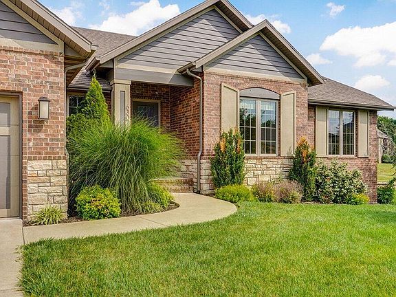Amazing SE Springfield location for this beautiful one-owner home! Located on a corner lot overlooking the neighborhood lake of Granite Springs--a small neighborhood just minutes from Hwy 65 & Evans Rd. Ozark address but with Springfield City Utilities and SPRINGFIELD SCHOOL DISTRICT: Field, Pershing & Glendale. This home offers 3 main-level Bedrooms, 2 Bedrooms in the basement, 4 baths, office/exercise room in the basement with modern barn doors & multiple living areas. Check out all the amazing closet space & custom shades throughout! New carpet in master bedroom, on stairs & in downstairs living. You will love the open living/kitchen/dining concept! Kitchen amenities include gas cook top, pot filler, wall oven, counter-depth refrigerator, granite countertops, walk-in pantry, painted & stained cabinetry. The drop zone off the garage includes cubbies & a desk that's convenient to the kitchen. The basement has a 2nd bedroom suite, custom wet bar & room for a game/pool table. Basement bonus areas: safe room off mechanical room and a separate storage room! Amazing views from the multiple decks & patio and there's room for outdoor entertaining & playing in the fully fenced backyard. The lawn has front & back irrigation plus nice mature landscaping. This home has it all and is ready for you to make it your own!