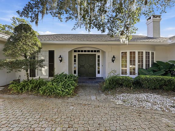 Experience the warmth of Southern hospitality at this former U.S. Ambassador's residence, featuring beautiful and convenient amenities. The expansive, climate-controlled sunroom offers stunning views of the lush green spaces at Gainesville Country Club, complemented by heritage climbing rose vines and wisteria that frame a patio, perfect for hosting your barbecue gatherings. This charming neighborhood overlooks Payne's Prairie, rich in local wildlife and home to an Audubon bird sanctuary.
