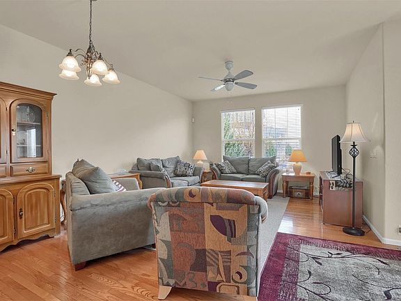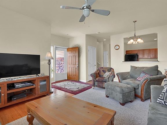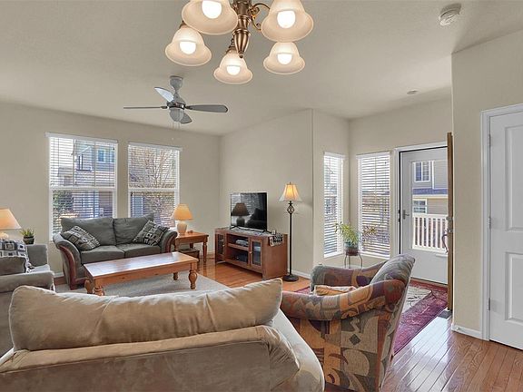 You don't want to miss this opportunity in Sand Creek Villas! This immaculately maintained townhome has an open floor plan, perfect for entertaining. The large kitchen with plenty of storage is open to the spacious family and dining room. Gleaming hardwood floors on the main level. All bedrooms on same level upstairs, including the spacious master suite and two additional bedrooms. Window coverings and washer/dryer included. Extra storage in oversized 2 car attached garage. Maintenance free exterior with beautifully maintained common areas. Access to walking trails and open space from right outside your front door. Walking distance to Ridgeview Elementary and Vista Ridge High School. Conveniently located to shops, restaurants, and recreation.