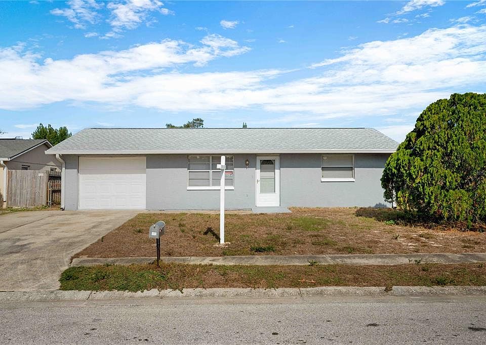 Welcome home! This delightful two bedrooms and one full bathroom home is centrally located and minutes away from Downtown New Port Richey. This home offers privacy with a spacious backyard that is fenced and surrounded by trees plenty of room to play in a great backyard. The kitchen is light and open, newly painted. No HOA. AC is just 3 years old. Brand new roof, November 2023. This home is ready for you to start making new memories! Affordable and ready for first time homebuyers, investors, or second home. WOW, under $200,000!
