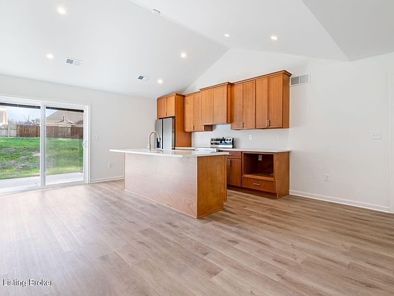 Welcome to this new construction, move-in-ready 3-bedroom, 2.5-bath ranch home nestled in the desirable Woods of Iroquois Heights neighborhood. Offering the perfect blend of modern design and functionality, this home features an open floor plan with abundant natural light that flows seamlessly throughout the entire space. Upon entering, you'll be greeted by a spacious living area that effortlessly connects to the dining and kitchen spaces—ideal for both everyday living and entertaining. This well equipped kitchen features a vaulted ceiling, sleek quartz countertops, stainless steel appliances, and an island with a breakfast bar. Just off the kitchen, a sliding glass door opens to a private backyard patio, providing the perfect setting for outdoor dining or relaxation. The luxurious primary suite is a true retreat, complete with a tray ceiling and an elegant en suite bathroom with beautiful tilework. Two additional bedrooms share a full bath, and a convenient powder room is perfect for guests. With a 2-car attached garage, easy access to Iroquois Park and Colonial Manor, and all the charm this neighborhood has to offer, this home is a must-see. Don't wait - schedule your private tour today and make this stunning property your new dream home!