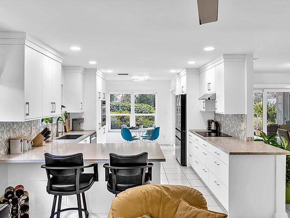 Step into luxury as you stroll along the curved paver walkway leading to the modern front door of this exceptional estate nestled in Boca Raton. Boasting 4 bedrooms, 2 and 1/2 baths, and over 3,100 total square feet, this rare find is designed for modern living.The heart of the home, the kitchen, underwent a stunning remodel in 2023 featuring 42'' white cabinetry, marble countertops, and top-of-the-line appliances. Enjoy meals in the charming breakfast area overlooking the serene lake or in the spacious dining area adjoining the 2-story living room.Throughout the home, white ceramic tiles and laminate flooring offer elegance and easy maintenance. Sunshades and Plantation Shutters adorn the Impact Windows, enhancing energy efficiency and aesthetic appeal. The Primary Bedroom Suite is a retreat unto itself, complete with a large walk-in closet, vaulted ceilings, and an updated bathroom featuring a freestanding bathtub and modern vanity.