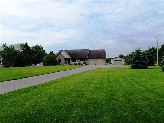 Enjoy this Spectacular Custom built Ranch on a 2 1/2 acre private country setting with a 24x40 Pole Barn. Featuring A Spacious Great room with stone gas fireplace. A fully applianced Custom kitchen with Merrillat Oak Cabinets. Anderson windows with custom window treatments. Master bedroom suite with master bath, walk in closets and private access to the spacious 320 sq ft deck ready for your Hot tub. This home also features a full finished basement with an additional 1,170 sq foot recreation room. First floor laundry with washer and dryer, plus a two car attached finished and heated garage. a Professionally landscaped and manicured lawn with loads of perennials and apple trees,garden area and much more.