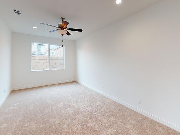 Pearce is a beautiful single-story home with plenty of space for the whole family. Much like the Reston model, the living/dining spaces are open and spacious with a large kitchen island and breakfast bar. It features a centrally located laundry room, two additional bedrooms, and a plenty of closets for storage. The owner's suite comes standard with a large walk-in closet, separate soaking tub and shower, and dual sink vanities.