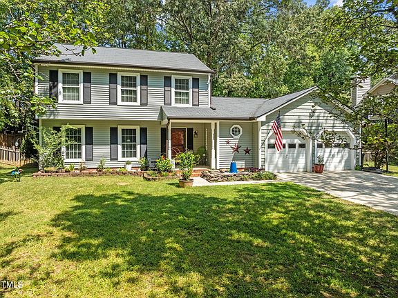 Welcome to your dream home in the highly sought-after Dominion Park neighborhood of Northwest Raleigh! This fully renovated 3-bedroom, 2.5-bath residence offers 1,831 square feet of beautifully updated living space. As you approach this charming home, you'll notice its striking curb appeal, enhanced by new vinyl siding, large gutters with leaf guards, and a spacious 2-car garage. The flat lot and fully fenced yard provide an ideal setting for outdoor activities and relaxation. Step inside to discover an inviting interior, featuring bamboo hardwood flooring throughout the first floor, crown molding, chair rails and 2'' faux wood blinds that add a touch of elegance to every room. The formal dining room, complete with new lighting, sets the stage for memorable gatherings. The heart of the home is the updated kitchen, boasting new cabinets, new black SS appliances, modern sink, and a center island adorned with stunning white quartz countertops. The adjacent breakfast nook is the perfect spot for morning coffee or casual meals. Upstairs, the home offers three perfectly sized bedrooms and two fully renovated bathrooms, all meticulously updated in 2013. The primary suite is a serene retreat, offering a blend of comfort and style. This home has undergone extensive updates to ensure peace of mind and modern convenience. The entire house was re-plumbed from Polybutylene to Pex in 2013, along with a new roof, HVAC system, hot water heater, and bathroom renovations the same year. New windows were installed in 2015, and the kitchen received an amazing makeover in 2018, complete with new cabinets, counters, and backsplash. New vinyl siding completed in Aug of 2023. The deck was updated with new railing in 2022, making it the perfect spot for outdoor entertaining. Located in a prime area, this home offers easy access to RDU Airport, I-540, shopping, dining, and top-rated schools. With its blend of modern updates, classic charm, and unbeatable location, this Dominion Park gem is ready to welcome you home!