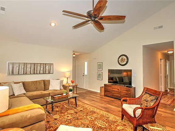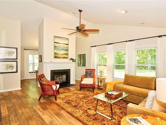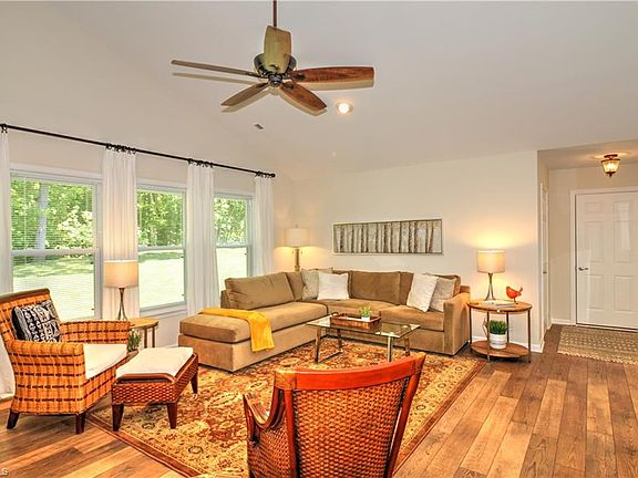 Fabulous home updated from top to bottom. Shows like a model home - completely move in ready. One level living at its best. Sun filled living room w/ cathedral ceiling & new gas logs. Kitchen remodeled - new ss appliances, granite w/ breakfast bar opens to cozy dining room. Spacious master BR has cathedral ceiling and remodeled master bath. Separate laundry room just added. New paint, LED fixtures and switches throughout. Great outdoor living space. Wooded common area at the back for privacy.