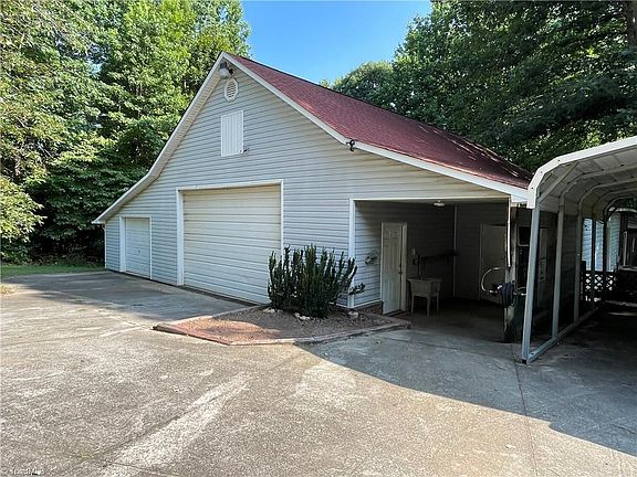 Welcome to this charming two-bedroom, two-bath home with an office. Situated on a spacious 2.03 acre lot in Pleasant Garden. The circle driveway leads to a huge detached garage with 12' ceilings and room for multiple vehicles, includes a 10' roll up door, workshop, gameroom and screened in porch & many other covered areas to store items. There is also a detached metal carport that remains. Do not miss this wonderful opportunity that has so much potential!!