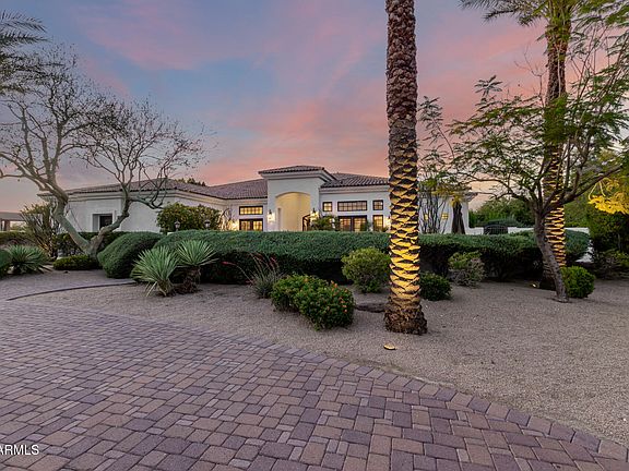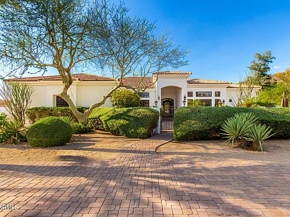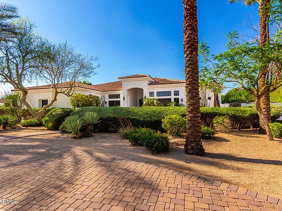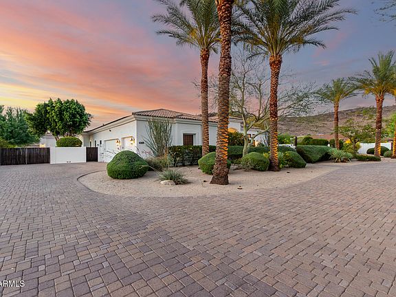 Tucked beside Thunderbird Conservation Park, this North Glendale gem is more than a home-it's a private solar-powered desert retreat built for living and entertaining. Set on over an acre behind secure gates, the property blends function and fun with a 40' deep, air-conditioned RV garage, sport court, putting green, and a fully redesigned backyard oasis. Freshly repainted inside and out, the home now exudes a soft Santa Barbara-inspired feel with bright, airy tones and timeless charm throughout. Inside, the light-filled single-level layout features a split primary suite, three additional bedrooms, and a spacious bonus room perfect for work, play, or hosting guests. The chef's kitchen is the heart of the home with a large prep island, eat-in dining area, and a 120 sq ft walk-in pantry equipped with dual fridge/freezer and a built-in ladder for high shelving. French doors lead to the ultimate outdoor setup-renovated play pool, shaded palapas, a built-in BBQ island with seating, and a full outdoor kitchen. Mature fruit trees and low-maintenance landscaping complete the scene. Sunrise, sunset, and mountain views are all included! THIS IS Arizona living at its BEST!