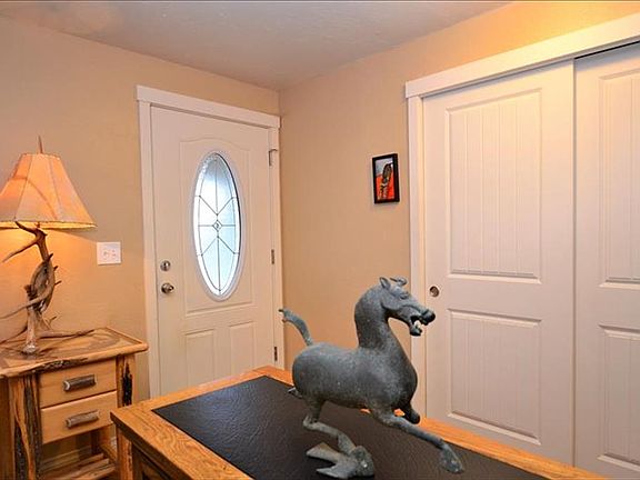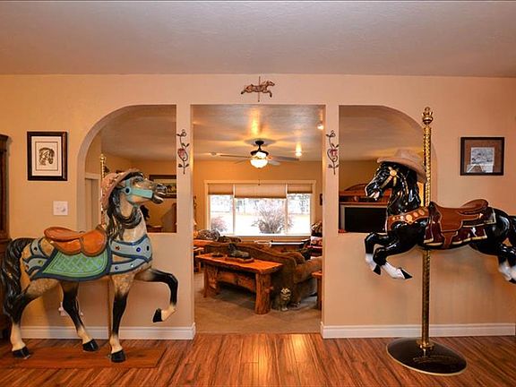 Fantastic horse property opportunity minutes from town! This warm & inviting single level home recently remodeled in 2018 is 2000 +/- sq ft w/3 beds & 2.5 baths. Featuring a large kitchen complete w/breakfast bar, plenty of cabinetry & stainless appliance. Large living room, spacious bedrooms & the new master highlights a double vanity w/custom walk-in shower. Newer Heat Pump w/cooling + base board heaters. Covered patio decks great for entertaining. Insulated over size 3 car detached garage w/workbench, cabinets, overhead lighting & automatic door. Outdoor riding arena (90' x 140') with all-weather footing professionally installed. 4 fenced pastures with 1.5 +/- acres of irrigation. 12x24 Insulated tack room/studio-bunkhouse. 52X36 Shop/Horse Barn has 3 stalls. Stall fronts & dividers are Mfg'd by MD Barns. 2 horse shelter w/paddock. Enclosed 14x10 insulated storage room & space to park RV & toys with 2, 14x12 roll up doors! Ride your horse to BLM trail access 1/4 mile down the road!