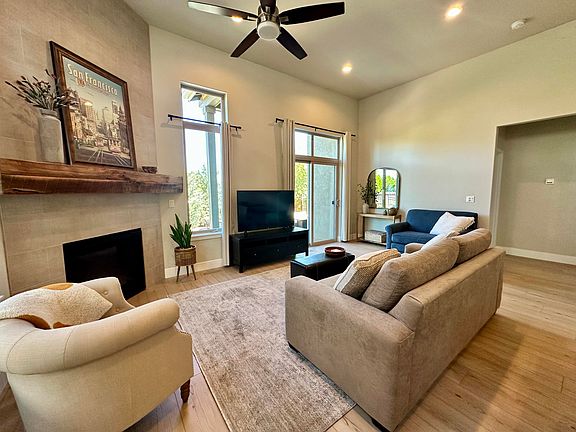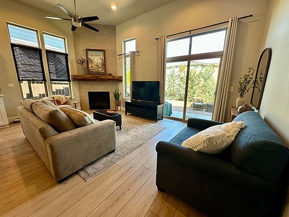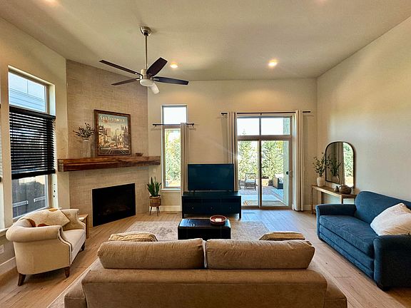 Step into this light and bright one-level Woodhill home that lives large with its open floor plan, soaring ceilings, and an abundance of tall windows that flood the space with natural light. The kitchen features a brand-new kitchen island topped with stunning quartzite counters, perfectly complemented by new Cortec luxury vinyl plank flooring. A custom mantel and built-in eating area seating create an inviting space for gathering and entertaining. Enjoy solid surface countertops in both bathrooms, including the primary suite, which offers a walk-in closet and private bath with tile shower. The thoughtful layout ensures easy living with style and functionality. Step outside to a beautifully landscaped backyard featuring a cobblestone patio and a raised planting hedge—perfect for relaxing or enjoying your morning coffee. Neighborhood amenities include option to join pool/clubhouse. Owner is a licensed Oregon real estate agent.