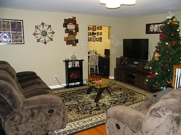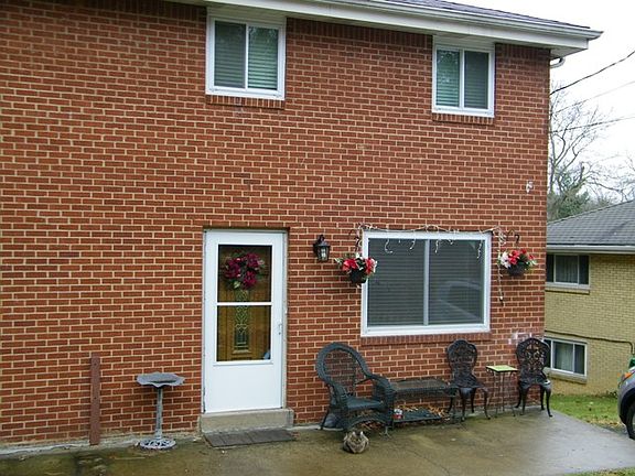 2 story ½ duplex brick home is a great starter! Parking is designated in your own driveway. Level entry leading to welcoming and attractive front door. Entering into this lovely home you begin in the spacious and open living room where beautiful hardwood floors greet you. A coat closet is conveniently located and the stairway overlooks the room. The hardwood floors flow into the dining room where a large window overlooks the wooded back yard. Moving into the kitchen are plenty of cabinets for storage, counter space accented by a decorative tile backsplash and a stainless steel gas stove and microwave which will allow cooking to be a breeze. Upstairs are 3 ample sized bedrooms with well appointed closet space. Newer bathroom features decorative sliding doors to tub/shower combo and updated fixtures and a unique vanity. A curved stairway leads to finished lower level that is currently being used as a family room that features a log fireplace and sliding glass doors opening to stone patio. Patio overlooks large tiered yard surrounded by mature trees for privacy.Fenced in backyard !!