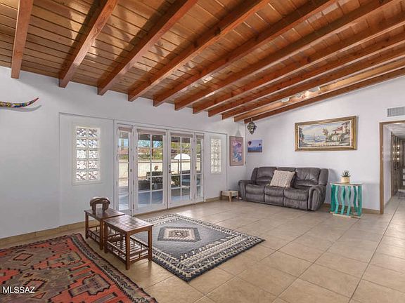 Fantastic Ranch style home w/great curb appeal & plenty of parking. Handsome vaulted wood plank exposed beamed ceiling, French door to patio, neutral tile floors, soothing palette, impressive rock fireplace, formal dining area, & ceiling fans. Plenty of wood kitchen cabinets, SS appliances, & pantry. Pride of Owner is evident throughout! Plush carpet in all bedrooms, large closets, laundry in kitchen, & 2 pristine baths. Private master en suite w/a pedestal sink. Decorative paver patio w/a covered patio, & room for a pool. Take a tour today & stop renting!