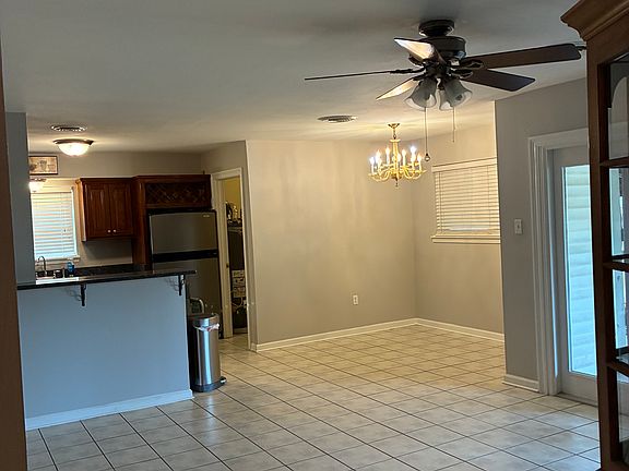 Large 4 bedroom, 2 bath with spacious back porch. Updated kitchen. New roof and AC. Tile, laminate, and hard wood floors, no carpet. Washer, dryer, refrigerator are currently in place but can be removed. Two car garage. Large closets. Renter pays all utilities. No smoking allows. Pets negotiable.