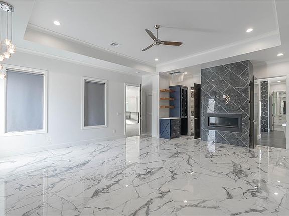 Welcome to a glorious modern residence nestled behind the gates of Cypress Point Estates at Oak Tree. This luxurious home, elevated above the street, exudes sophistication and symmetry. Ascend the steps to discover an architectural masterpiece. Upon entering, a grand foyer introduces you to the expansive two-story living room that seamlessly flows into a chef's kitchen and dining area. The interior boasts marble floors, an abundance of natural light, soft hues, and designer finishes throughout, creating an ambiance of refined elegance. Equipped with smart home features, this residence offers unparalleled convenience, allowing you to control nearly every aspect of your home with ease. The kitchen is a culinary enthusiast's dream, featuring a striking black geometric island with an integrated sink, top-of-the-line stainless steel appliances, a distinctive scaled tile backsplash, and an impressive 24-foot walk-in pantry. The main level also includes a fully-equipped media room with its own kitchen, a guest bedroom, laundry room, mudroom, fitness room, and a sprawling 6-car garage. Upstairs, discover three additional guest bedrooms, each with its own bathroom, a lofted bonus space, another office, and a 1,200-square-foot primary suite. This luxurious suite includes a sitting area, a private balcony, a lavish ensuite with his and hers vanities, a frameless glass shower, a soaker tub, and an expansive walk-in closet. The backyard is an oasis of tranquility, featuring an outdoor living area and a large pool, perfect for relaxation and entertaining. Living in Oak Tree offers exclusive access to a wealth of amenities provided by the prestigious clubhouse. Enjoy world-class golf courses, tennis courts, a state-of-the-art fitness center, fine dining, and social events designed to enhance your lifestyle. This exceptional home combines modern elegance with unrivaled amenities, providing the perfect sanctuary for those who seek the finest in life.