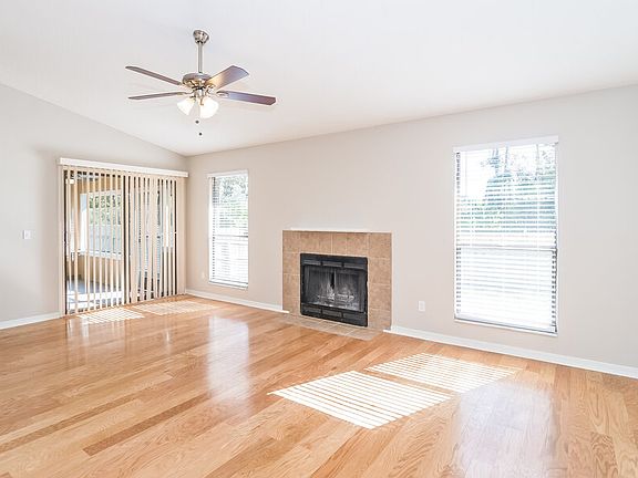 Please note, our homes are available on a first-come, first-serve basis and are not reserved until the lease is signed by all applicants and security deposits are collected. This home features Progress Smart Home - Progress Residential's smart home app, which allows you to control the home securely from any of your devices. This home is priced to rent and won't be around for long. Apply now, while the current residents are preparing to move out, or call to arrange a meeting with your local Progress Residential leasing specialist today. Spread out in this Fleming Island, Florida rental home featuring an open floor plan with hardwood flooring throughout as well as three bedrooms and two bathrooms. Inside, you'll find the living room, which features a built-in fireplace flanked by two windows. A ceiling fan and walk-in closet add to the charm. Sliding glass doors open into the sunroom. This space, surrounded by large windows, opens out into a fenced-in backyard. The kitchen includes plenty of storage space with wood cabinetry and ample workspace on the extensive countertops. Modern stainless steel appliances add function and beauty. The main bathroom features two separate sections, allowing the sink and vanity more privacy. Carpeted bedrooms feature ceiling fans. Contact us to schedule a tour.